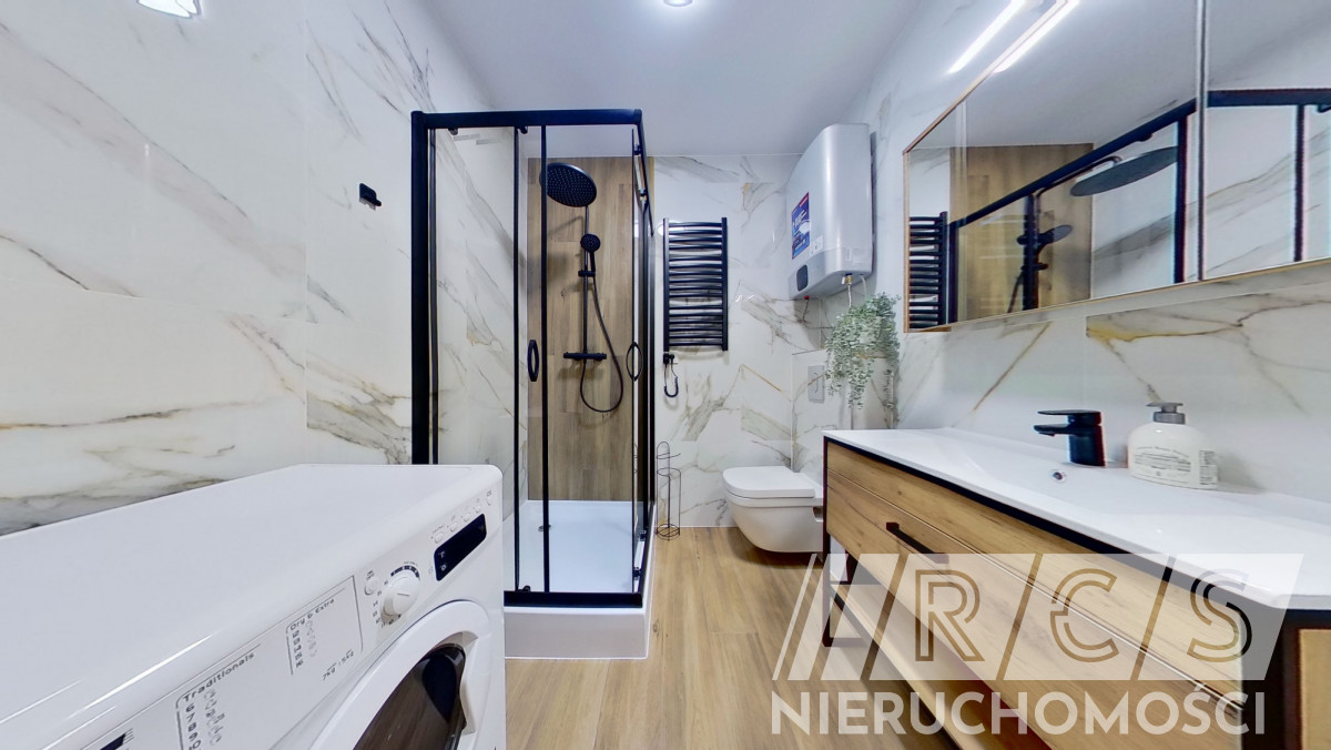 W pełni umeblowane i wyposażone w sprzęt RTV-AGD TV 4K Smart, pralko - suszarkę, lodówkę, indukcyjną płytę grzewczą, zmywarkę